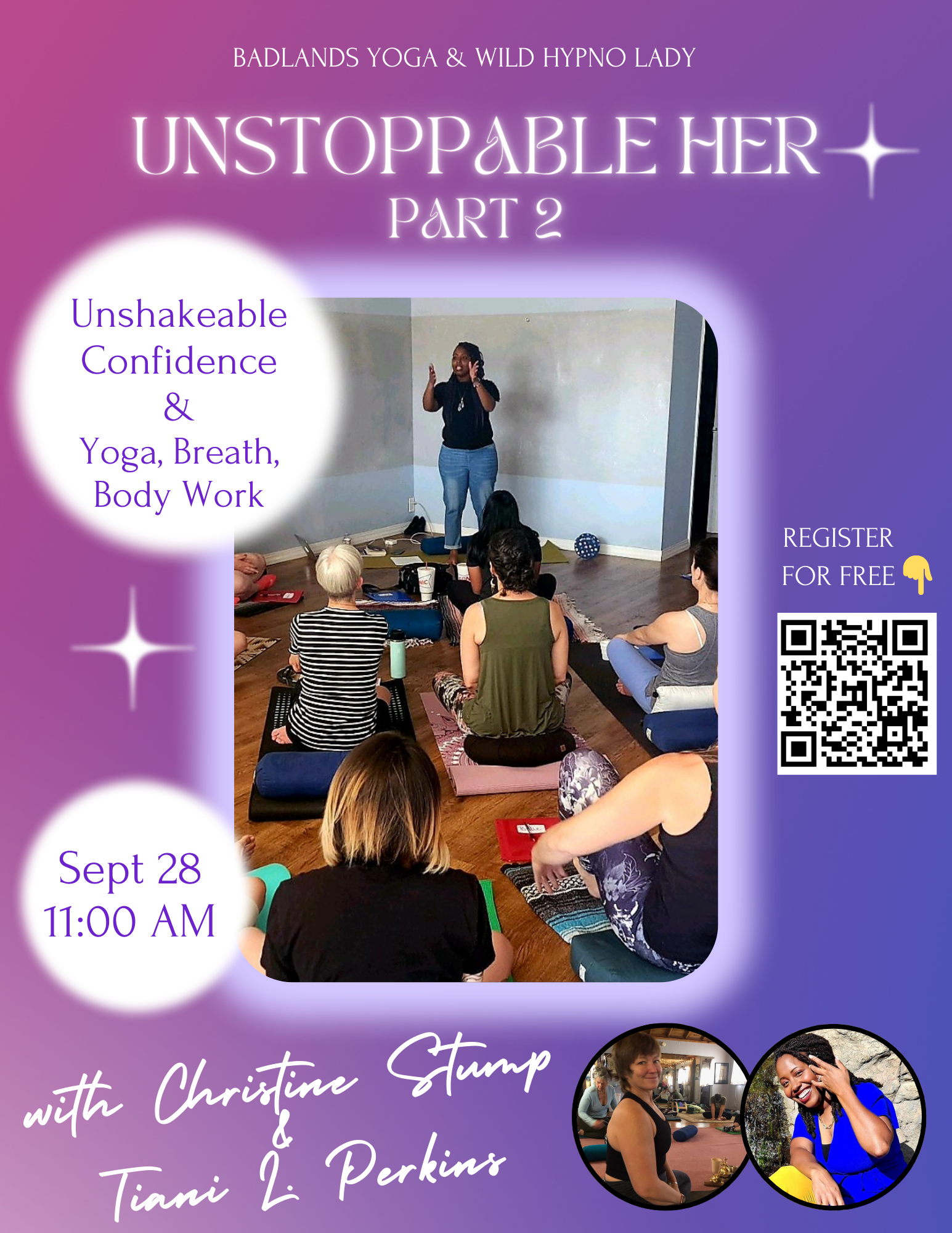 - Full Body Integration: Christine Stump, Yoga & Breath-Bodywork Instructor, will lead you through transformative yoga poses and breathwork exercises designed to fully integrate these confidence-building practices into your mind and body.